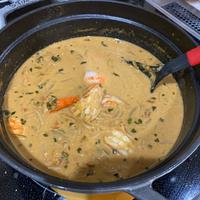 - 6 3を加え、エビに火が通るまで中火で2分程煮たら火から下ろします。