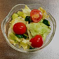 レタス1/2、きゅうり1本、ミニトマト8個。ドレッシングの調味料が適当に1.5倍くらいで作ったのでちょっと濃くなっちゃったかな。次作る時はちゃんと計って作ってみようと思います💦
