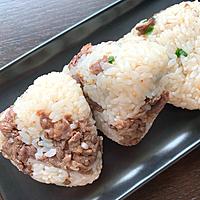 牛肉のしぐれ煮を混ぜ込んだ、具だくさんおにぎりはいかがでしょうか。ジューシーな牛バラ肉にたっぷりの生姜を加えて、食欲をそそる甘辛い味つけで仕上げました。電子レンジでお手軽にお作りいただけますので、ぜひお試しくださいね。
