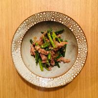 - 1 ニンニクの芽は3cm幅に切ります。豚バラ肉は一口大に切ります。