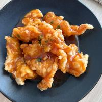 カリッと揚がった衣とプリプリの海老が絶妙な食感を楽しめる一品です。ラー油の辛みと酢の酸味が効いたチリソースは、食欲をそそる香りと味わい。辛さは好みで調整可能で、辛いのが苦手な方はラー油を控えめにすれば甘酢あんのような優しい味わいに。カリカリの衣がソースをしっかり絡め、ボリューム満点の仕上がりです。お弁当にも向き、冷めても美味しく頂けます。