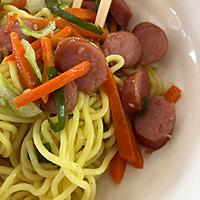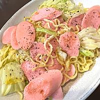 ウインナーで作りました。簡単に塩焼きそば←塩は使わないんですね⁈ ができて満足です♫