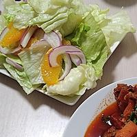 盛り付けてから玉ねぎの入れ忘れに気がつきました😥流水でさらして準備していたのに😣レタスとオレンジの甘さが合って美味しかったです。