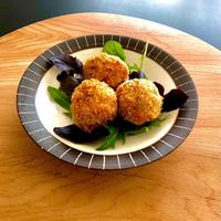 チーズたっぷりメンチカツのご紹介です。肉だねをよくこねる事で、柔らかくジューシーなメンチカツに仕上がります。中にチーズをたっぷり入れたので、まろやかになりお子様にも好まれる味になりました。ぜひお試しくださいね。