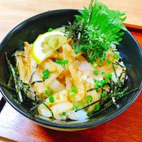ゆず胡椒が効いたピリ辛タレが食欲をそそるイカの浸け丼のご紹介です。卵黄のまろやかさがイカの甘さを引き立て、ねばねばのオクラソースで食欲が止まりません。あっさりとした味付けですが、食べ応え十分の一品です。是非お試しください。