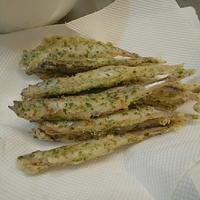 - 1 袋にししゃもとまぶす用の天ぷら粉を入れまんべんなくまぶします。