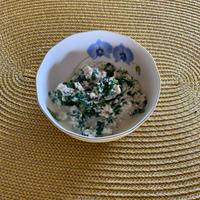 シンプルな白和えで春菊の美味しさをストレートに味わえました。絹豆腐は一晩水切りし、白だしやや多めにしました。