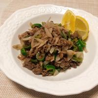 牛肉と玉ねぎに、しっかりと下味が入って、レモンの風味がきいている、さっぱりとして美味しい一品です。 また、ピーマンのほんのりとした苦味も、とても良く合います。 切った具材に下味を付けて焼くだけでとても簡単に仕上がります。