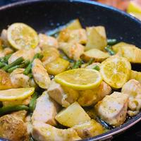 レモンとバジルの爽やかな香りが食欲をそそる一品です。鶏むね肉は塩こしょうと小麦粉を振って焼くと、しっとりジューシーに仕上がります。いんげんの他にも、じゃがいも、しめじ、夏野菜など好みの野菜を加えてアレンジ可能。ジェノベーゼソースの風味とレモンの酸味が絶妙なバランスで、パーティー料理のような洗練された味わいを楽しめます。白ワインを加えると、より本格的な一皿に。