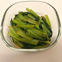 - 1 小松菜は根元を切り落とし、3cm幅に切ります。