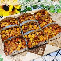 これは神レシピです!美味しすぎて何度もリピートしてます!ココナッツサブレを土台にそのまま使って、アルミカップに1枚ずつ並べナッツを上に乗せて焼いてます。私は20分焼いてこんがりキャラメル色になる方が好きです。ミックスナッツは荒く刻んでます。焼き上がりすぐは柔らかいので、そこで形を整えます。私は冷凍室で凍らせて食べるのが一番美味しいと思ってます。