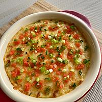 - 2 耐熱皿に流し入れ、ピザ用チーズをかけます。焼き色がつくまでオーブントースター6分程焼きます。
