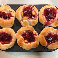 カスタードクリームとアメリカンチェリーのジャムを乗せた、ふんわりパンのご紹介です。時間は少しかかりますが、自分で捏ねたパンはとても美味しいですよ。甘酸っぱいチェリーのジャムとカスタードがよく合いますよ。この機会に是非作ってみてくださいね。