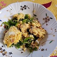 - 2 別の耐熱ボウルに卵、マヨネーズを入れ菜箸で混ぜ合わせたらふんわりとラップをし、600Wの電子レンジで1分加熱します。
