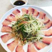 手軽で美味しいカンパチサラダです!! スーパー刺身がセール中だったので早速作ってみました。ありがとうございます!