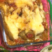 出来上がったものを耐熱皿に移してチーズをのせてオーブンで焼いてみました。