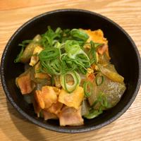 冷蔵庫にこんにゃくとベーコンが余ってたので、大根なし、オイスターソースなし、他はだいたいレシピ通り(目分量)で作りました