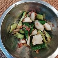 - 1 きゅうりを麺棒でたたき、ヘタを切り落として一口大に切ります。