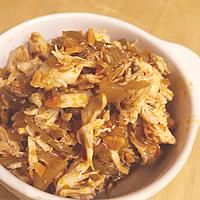 - 2 1のあら熱が取れたら水気を切り、手で裂きます。