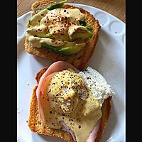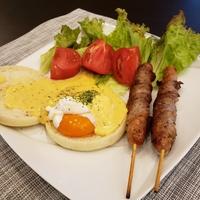 ポーチドエッグの黄身が割れないかヒヤヒヤでした笑 なんとかいい感じ🙆
