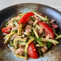 「トマトときゅうりの中華風ツナサラダ」の作り方を簡単で分かりやすいレシピ動画で紹介しています。