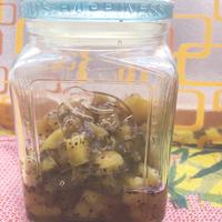 自宅で収穫したキウイです。時短出来るということでこのレシピでジャムを作りましたが、実際は水分の多いジャムになり、結局、水分をとばすため約15分火にかけたので、二度手間になりました。分量はキウイ400g、砂糖大さじ8では酸っぱくて大さじ2杯追加、レモン汁小さじ1杯半です。まだ酸っぱさが残りますがヨーグルトに入れるとちょうどよく、トーストで食べた場合はちょっと酸っぱそうです。もともとキウイに甘さがなかったので仕方ないのですが…。別のレシピでキウイジャムを二回作っていますが、最初から前回のレシピで作っていたら、手間が省けましたが、いろいろな作り方があるということで勉強になりました。😋🍴💕