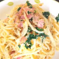・混ぜるのに時間がかかると卵に火が通ってしまうのでお気をつけください。 ・スパゲティを茹でる時は、表示時間の30秒~1分早めに上げてからソースに加えてください。 ・撮影では1.6mmのスパゲティを使用しています。