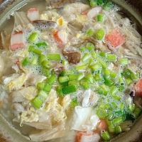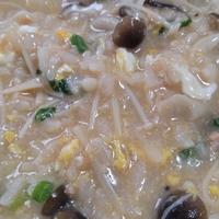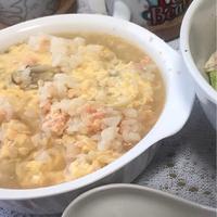 体調不良時に作りました。自家製塩きのこと自家製鮭フレーク、余っていたカニカマを入れました。