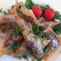 きのこの旨みたっぷりのカレー風味ミートソースを、シュウマイの皮に包み込み、カリッと揚げました。スナック感覚で食べられるので、お酒のお供にもぴったりですよ。カレーのスパイスがアクセントになっていて止まらない美味しさです。ぜひお試しください。