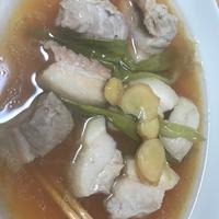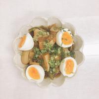 焼き色つける、生姜入れて茹でる、タレで煮る、タレだけ煮る