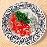 - 6 器に盛り付け、3、4、1をのせ、白いりごまをかけて完成です。