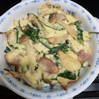 食パン、卵、豆腐消費に作りました。きのこは椎茸を入れました。ふわっと食感でとても美味しいです☆リピします☺️✨