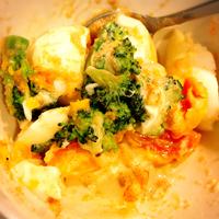 ブロッコリーの残りと茹で卵に明太子マヨネーズを和えてみた。美味しい‼️
