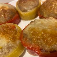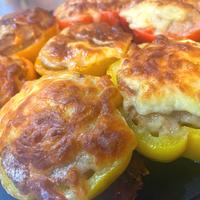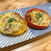 赤と黄色のパプリカを使って、カラフルな肉詰めはいかがでしょうか。チーズをたっぷりと乗せて、旨味もコクもアップです。パプリカの色合いで食卓が華やかになるおかずです。ぜひ作ってみてくださいね。