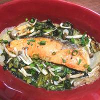 - 5 鮭に火が通ったら、小ねぎを散らして完成です。