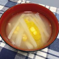 大根とコーンのバター味噌汁のレシピのご紹介です。バターを加えることでコクが加わり、ひと味違った味噌汁になります。いつもの味噌汁にひと手間加えるだけですので、この機会に、ぜひ一度試してみてくださいね。