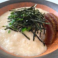すりおろした長芋に味噌風味の出汁を合わせて、ごはんにかけてみました。なめらかな長芋に味噌風味の出汁がごはんとよく合います。お好みで角切りにした長芋を加えると歯応えが増します。薬味もお好みのものを添えて、ぜひお試しくださいね。