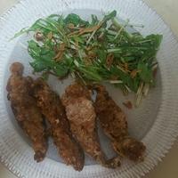 初めてせせりの料理をしましたが、カリカリで美味しくできました。水菜は和風サラダで添えました。