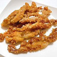 - 3 1に片栗粉をまぶし、余分な片栗粉は落とします。
