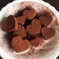 ゼラチンを加えた後は、固まりやすいので素早く型にいれてください。 卵白は、ツノが立つまでしっかりと泡立てて下さい。 型にココアパウダーをまぶしてから入れることで、型にくっつきにくく、外しやすくなります。 ご使用の電子レンジの機種や耐熱容器の種類、食材の状態により加熱具合に誤差が生じます。様子を確認しながら、必要に応じて加熱時間を調整し加熱してください。