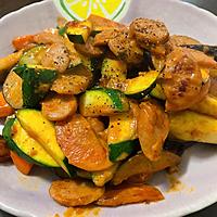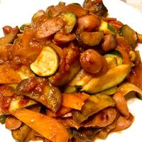 - 6 にんじんに火が通ったら残りの野菜とウインナーも加え炒め合わせます。