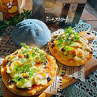 - 3 アルミホイルを敷いた天板にライ麦パンをのせ、マヨネーズを塗り、2、1、ピザ用チーズをトッピングします。