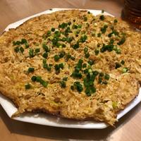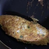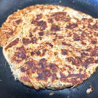 - 4 中火で熱したフライパンにごま油をひき、3を流し入れ、半熟状になるまで、混ぜながら焼きます。蓋をし、焼き色がつくまで弱火で5分程焼きます。