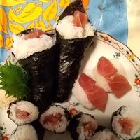 本鮪の寿司バーを旦那石川淳也と長男息子アイシンカクラエイセイ撮影家會田恭平におもてなししました❇️英国人作家會田恭子が寿司を握るときに寿司飯が手に付かないように注意しました。そして寿司屋さんに行かなくてもホームパーティーで寿司バーを催すことに決意しました❇️
