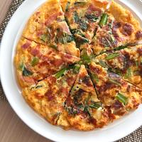 ふわふわ卵に溶けたチーズの優しい味わいが絶妙な一品です。小松菜とベーコンの相性も抜群で、しっかりとした味付けながらマヨネーズの優しい風味が調和します。材料を混ぜて焼くだけのお手軽レシピですが、ひっくり返すコツは蓋を使うこと。玉ねぎやエリンギを加えてアレンジも楽しめます。ウインナーに変えても美味しく、ボリューム満点の仕上がりに。