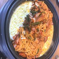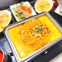 とろけるチーズがパスタに絡み合い、まろやかな味わいと食感を楽しめるナポリタンです。ホットプレートで作るので、家族みんなで楽しく調理できます。ベーコンやトマトを追加したり、お好みで味の濃さを調整できるのも魅力。熱々のチーズがトロトロに溶けた瞬間は食欲をそそります。チーズ好きにはたまらない一品で、休日の定番メニューになること間違いなしです。