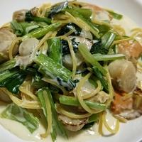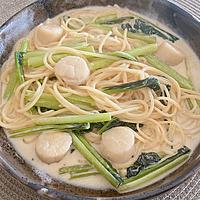 プリプリホタテと小松菜のクリームパスタ レシピ・作り方
