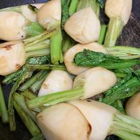 - 3 カブに火が通ったら(A)を入れて中火で炒め合わせます。味がなじんだら火から下ろし、器に盛り付けて完成です。