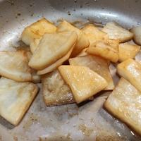 手順も簡単で、カブをレシピより薄めに切って軽く透き通るまで炒めてからポン酢を投入しました。