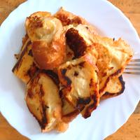 1枚(5枚切)なので半分量で砂糖使用、バニラオイルなし、ハチミツかけ